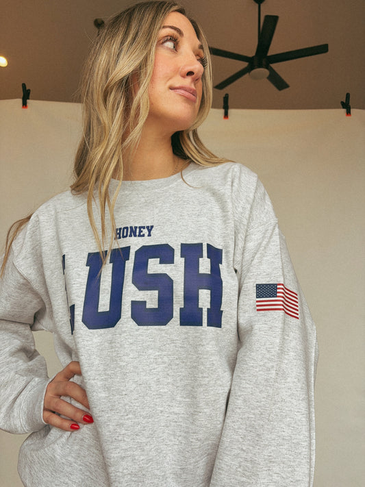 "USA" CONTRAST TRIM DETAIL OVERSIZED SWEATSHIRT: CHARCOAL